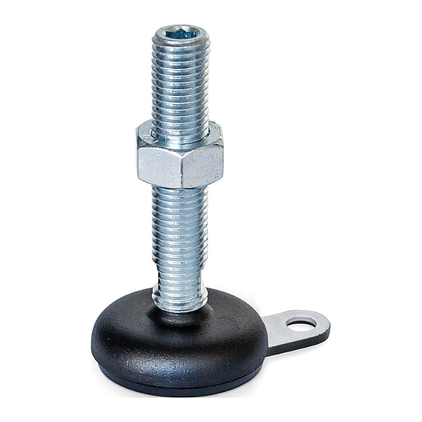 Male-End Leveling Mount, Leveling Mount Type Swiveling Stud, Base Dia. 3.15 in, Height 4.73 in, Load Capacity 2,698 lbf, Thread Size 3/4 In.-10, Includes Nut, Rubber Pad, Connection Type Threaded Stud, Bolt Length 3.94 in, Finish Powder-Coated, Base Material Steel, Thrust Pad Material Buna-N, Bolt Material Steel, Swivel Angle 6 Degrees , Base Shape Round, Base Thickness 0.79 in, Series GN 32, Socket Material Not Applicable
