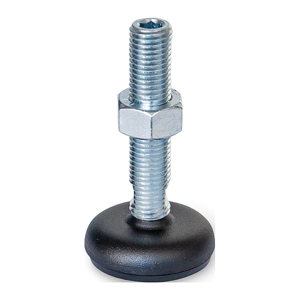 Male-End Leveling Mount, Leveling Mount Type Swiveling Stud, Base Dia. 3.94 in, Height 5.32 in, Load Capacity 2,473 lbf, Thread Size 3/4 In.-10, Includes Nut, Rubber Pad, Connection Type Threaded Stud, Bolt Length 3.94 in, Finish Powder-Coated, Base Material Steel, Thrust Pad Material Buna-N, Bolt Material Steel, Swivel Angle 6 Degrees , Base Shape Round, Base Thickness 0.79 in, Series GN 30, Socket Material Not Applicable