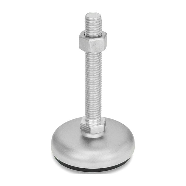 Male-End Leveling Mount, Leveling Mount Type Swiveling Stud, Base Dia. 3.15 in, Height 6.62 in, Load Capacity 4,271 lbf, Thread Size 1/2 In.-13, Includes Nut, Rubber Pad, Connection Type Threaded Stud, Bolt Length 5.91 in, Base Material 304 Stainless Steel, Thrust Pad Material Buna-N, Bolt Material 303 Stainless Steel, Swivel Angle 6 Degrees , Base Shape Round, Base Thickness 0.71 in, Series GN 31, Socket Material Not Applicable