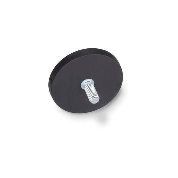 RETAINING MAGNET ASSEMBLY W/ THREADED STUD AND RUBBER JACKET - .87" DIA. ZINC PLATED STEEL THESE MAGNETS ARE A SHIELDED MAGNETIC ASSEMBLY WITH RUBBER JACKET. THEY ARE ESPECIALLY SUITABLE FOR APPLICATIONS WHERE THE SURFACE IS EASILY MARRED. ALSO, THESE MAGNETS HAVE AN INCREASED COEFFICIENT OF FRICTION, WHICH CREATES HIGH LATERAL RETAINING FORCE. TYPE ND TEMPERATURE RESISTANT TO 175 °F (80°C).