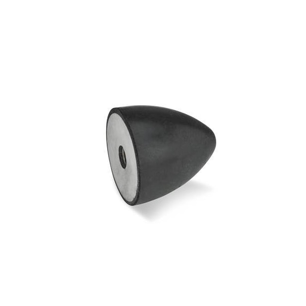 Vibration-Isolating Mount, Vibration Isolator Style One Tapped Hole, Maximum Load Downward Compression 13.26 lbf, Overall Diameter 10 mm, Height 0.39 in, Stud Length Not Applicable, Maximum Load Sideways Shear 114 lbf, Thread Size M5, Durometer 55A, Isolator Material Natural Rubber, Maximum Operating Temperature 176 Degrees F, Mounting Conveyor, Resistant To Abrasion; Wear, Shape Conical, Stud or Tap Material 304 Stainless Steel, Tap Depth 5 mm