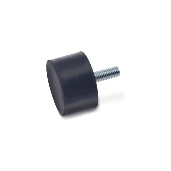 VIBRATION/SHOCK ABSORPTION MOUNT, THREADED STUD, 1.18" DIA, 20MM H, M8 X 1.25 THREAD VIBRATION / SHOCK ABSORPTION MOUNTS, ALSO KNOWN AS VIBRATION ISOLATION MOUNTS, ANTI-VIBRATION MOUNTS, VIBRATION BOBBINS OR RUBBER BUMPERS, ARE USED AS END-STOP BUMPERS, E.G., FOR CONVEYOR TROLLEYS. THEY ABSORB MOST OF THE ACCUMULATED KINETIC ENERGY ON IMPACT. THEY ACT AS DAMPERS AND PREVENT DAMAGING SHOCK AND REBOUND. THEY ALSO ACT AS SOUND DAMPERS. THESE MOUNTS ARE ALSO USED AS LEVELING FEET.