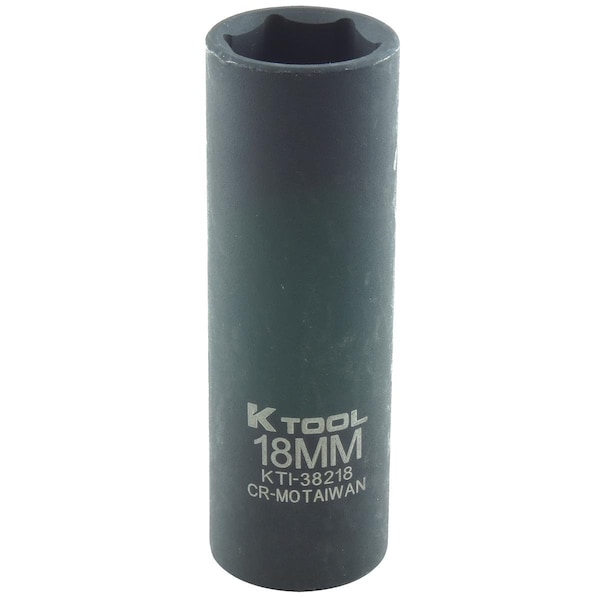 Deep 6 Pnt Impact Socket,1/2 In.Dr,18mm