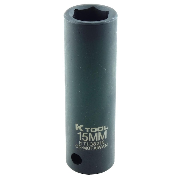 Impact Socket,Deep,6 pt.,1/2 In.Drive,15mm