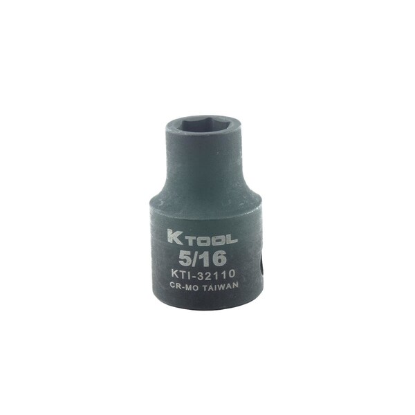 3/8 in Drive Impact Socket Standard Socket, black oxide, SAE, 5/16in., 1-3/16in.L, Hex