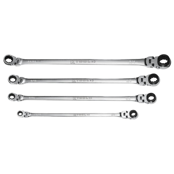 4Pc Sae 120 Tooth Double Flex Ratcheting Wrench Set