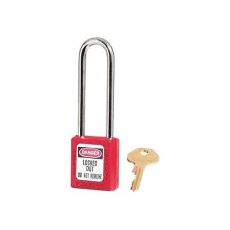 Zenex, Thermoplastic Safety Lockout Padlock, 410, 1-1/2 W x 1-3/4 H Body, 3 in H Shackle, KA, Red