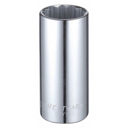 WESTWARD 1/2 in Drive, 1-1/8" Triple Square SAE, Socket, 12 Points, Steel, Chrome, 1 1/8 in
