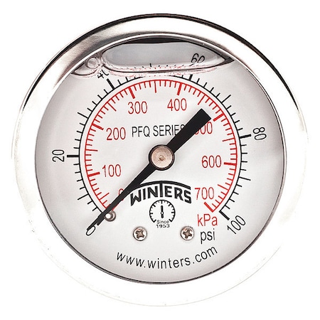 Commercial Pressure Gauge, 0 to 100 psi, 2 1/2 in Dial, 1/4 in NPT, Center Back Location