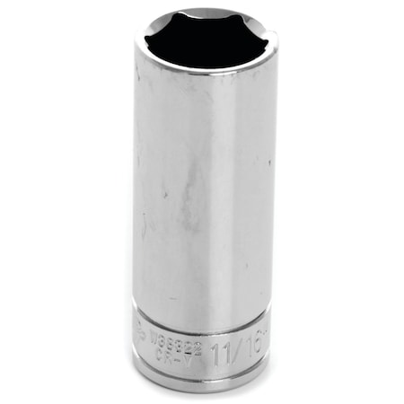 1/2" Drive, 11/16" SAE Socket, 6 Points, Deep 6Pt, Chrome 1/2"Dr, 11/16