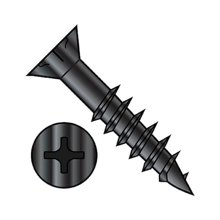 Wood Screw, #7, 1/2 in, Black Steel Flat Head Phillips Drive, 40 PK