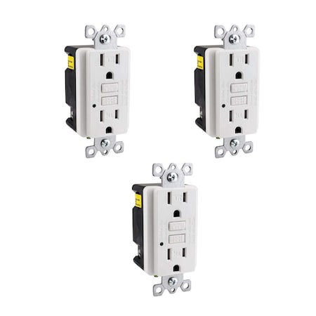 E545 GFCI Duplex Outlet 20 Amp 120 VAC 2 Pole/3 Wire Wallplate LED Indicator Light White, 3PK
