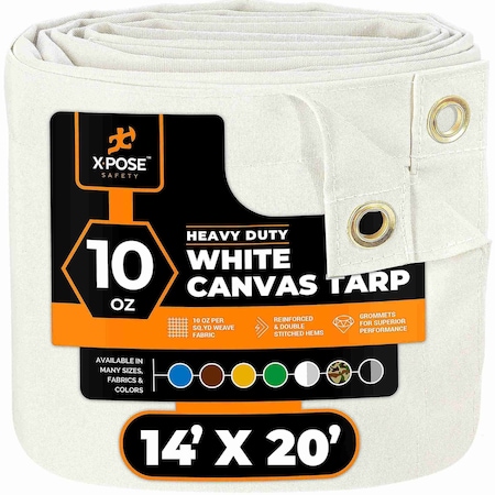 Tarp, 14 ft X 20 ft, 10 oz, White, Canvas