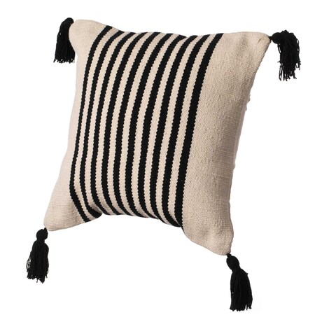 16" Handwoven Cotton Throw Pillow Cover with White Tufted Stem Pattern and Black Tassel Corners