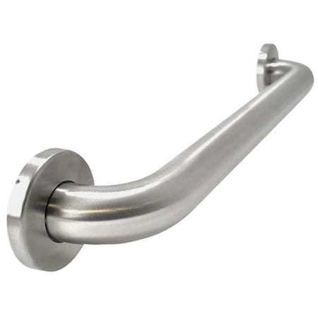 Wall Mounted ADA Compliant Grab Bar, 18 in L, 1-1/2 in Dia, Stainless Steel, Satin Finish, Silver