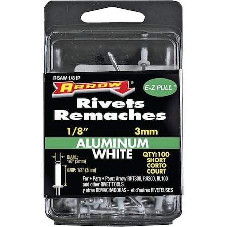 Pop Rivet, Short, 1/8 in L, Aluminum, 100PK