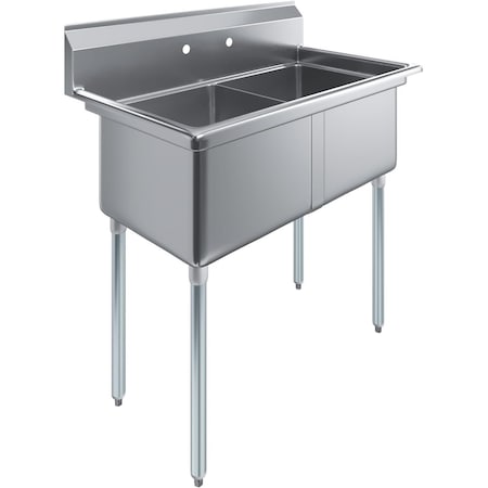 2 Compartment Stainless Steel NSF Commercial Kitchen Prep & Utility Sink with 2 Drainboards
