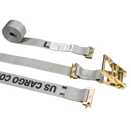 2" x 16' Gray E-Track Ratchet Strap w/ Double-Fitted End