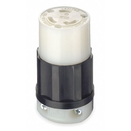 Locking Connector, L6-30R, 30 A, 250V AC, Single Phase, 2 Pole, Screw Terminals, Black, White