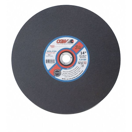 Abrasive Cut-Off Wheel, Type 1, 20 in Dia, 0.1563 in Thick, 1 in Arbor Hole Size, Aluminum Oxide