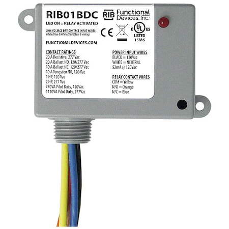 Rib 20Amp Spdt 24 Vac Dc, 120 Vac