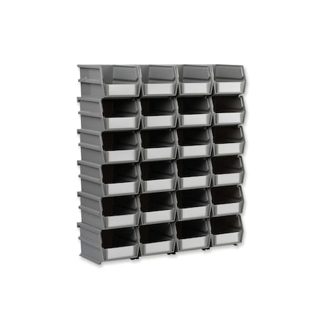 Stacking Hanging Interlocking Bins, Gray, Polypropylene, 5-3/8" L x 4-1/8" W x 3" H, 24 CT