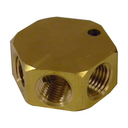 Brass Flat Hex Manifold - In-Out 3/8 Inch NPT Female 3 Way Outlet