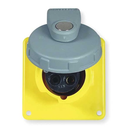 Watertight Pin & Sleeve Receptacle, 20 A, 125V AC, Single Phase, 2 Pole, IEC Grounding, Yellow