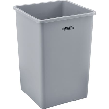 Square Plastic Garbage Can, Gray, 35 Gallon