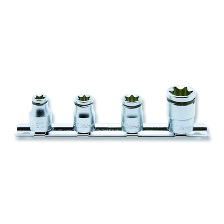 1/4, 3/8, 1/2 In Dr. German Auto Torx, Triple Square, TR Triple Square and E-Star Socket Set w/Rails