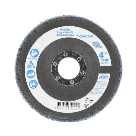ZIRCOTEX Premium Coated Abrasive Flap Disc, 4-1/2 in Dia Disc, 7/8 in Center Hole, ZA40 Grit, Premiu