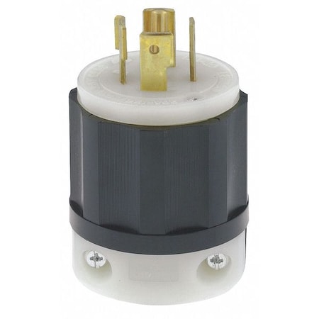 Locking Plug, L15-30P, 30 A, 250V AC, Three Phase, 3 Pole, Screw Terminals, Black, White