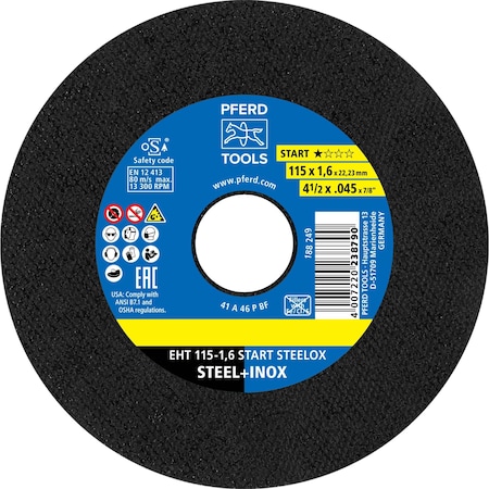 Cut Off Wheel, Type 1, 4.5 in Dia, 3/64 in Thick, 7/8 in Arbor Hole Size, Aluminum Oxide, 46 Grit