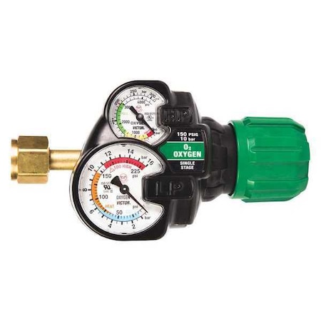 Gas Regulator, Argon, Helium, Nitrogen, Single Stage, 0.965"-14 Inlet, 5/8"-18 Outlet, 150 psi