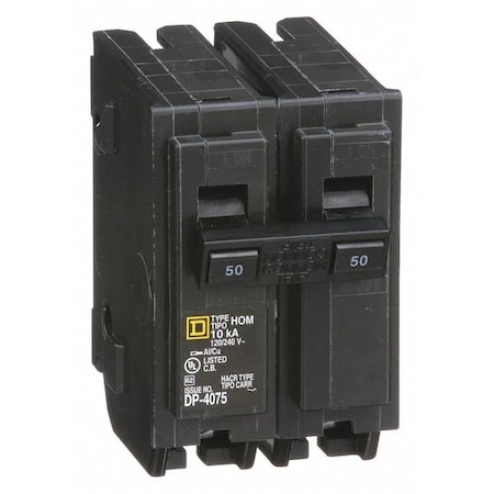 Circuit Breaker, C Series, 50A, 2 Pole, 250V AC, 1.5kA at 120/240V AC, C Curve