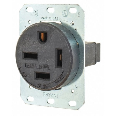 Straight Blade Receptacle, 15-50R, 50 A, 250V AC, 3 Pole, 4 Wire, Flush Mount, Grounded