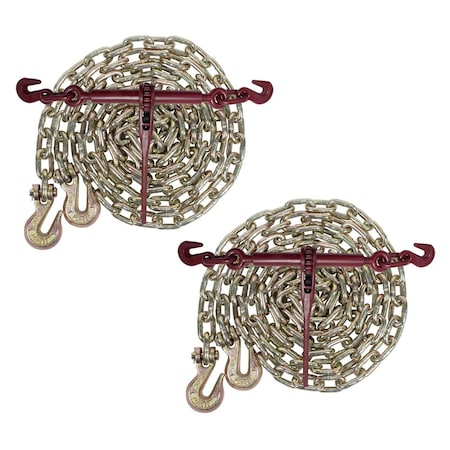 5/16 20ft G70 Chain 2 and Easy Binder Ratcheting Chain Load Binder 2 Transport Chains, 2PK