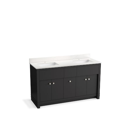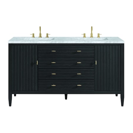 60'' Double Vanity, Carbon Oak w/ 3 CM Carrara White Marble Top