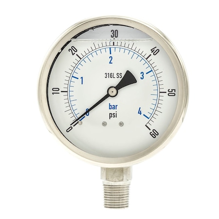 Pressure Gauge with Diaphragm Seal, 0 to 60 psi, 2 1/2 in Dial, 1/4 in NPT, Bottom Location