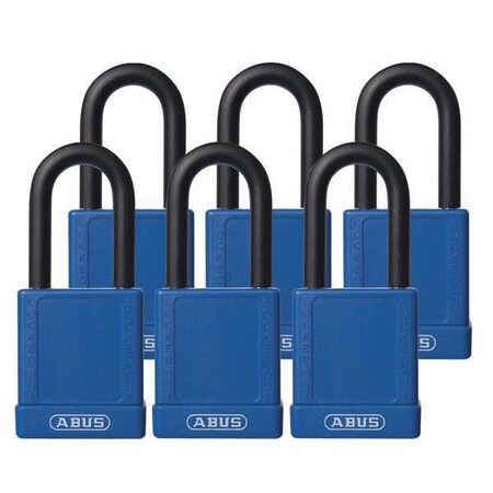 Lockout Padlock, Keyed Alike, Aluminum, Blue, 1 1/2 in Shackle Height, 1 1/2 in Body Width, 6 PK