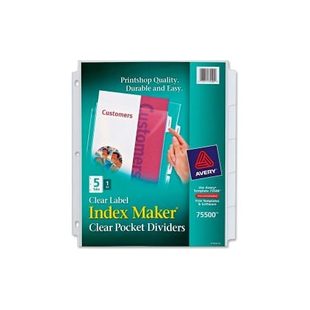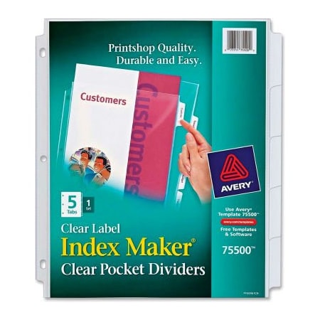 Avery Index Maker 5-Tab Clear Pocket View Divider, Print-on, 8.5"x11", 5 Tabs, White/Clear