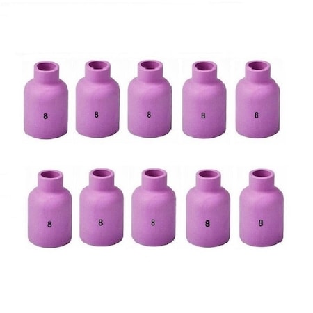 Alumina Nozzle TIG Cup, 1/2 in, Size 8, For Torch 17, 18, 20, 22, 25, 26, 9, Standard, 10PK