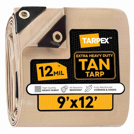 Heavy Duty Tarp, 9 ft x 12 ft, 22 Mil, Brown/Black, Polyethylene, Waterproof, Rip and Tear Proof