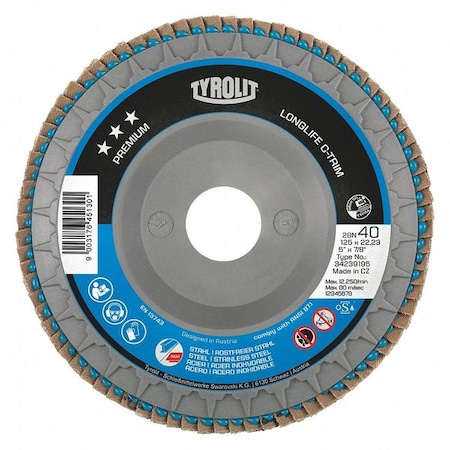 Flap Disc, T27N, 4.5"x5/8"-11, 40 Grit, PK5, Abrasive Material: Zirconium Aluminum Oxide