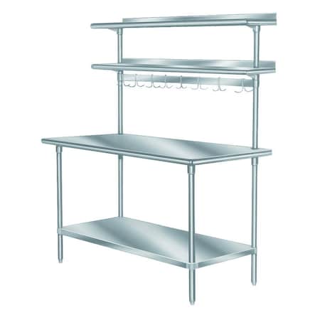 Overshelf, table mounted, single, 120 in.W x 10 in.D, stainless steel, uprights of shelf
