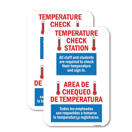 Public Safety Sign-Temperature Check Station Spanish, Heavy-Gauge, 12" x 18", A-1218-25433