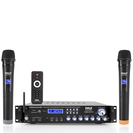 Pyle 300W Bluetooth Karaoke Amplifier, 2-Channel PA System, FM Radio, USB/SD, AUX, 2 Mic Inputs