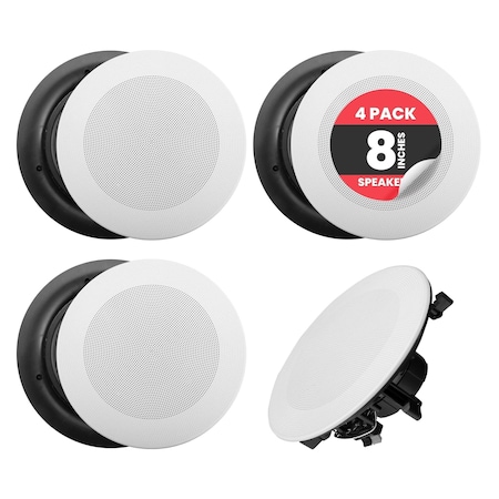 Pyle 8 in 4 Bluetooth Flush Mount - In-wall, 2-Way Speaker System, Poly Cone, 250W Amplifier, White