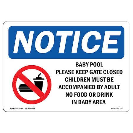 OSHA Notice Sign, 7" Height, Aluminum, Baby Pool Please Keep Gate Closed Sign With Symbol, Landscape