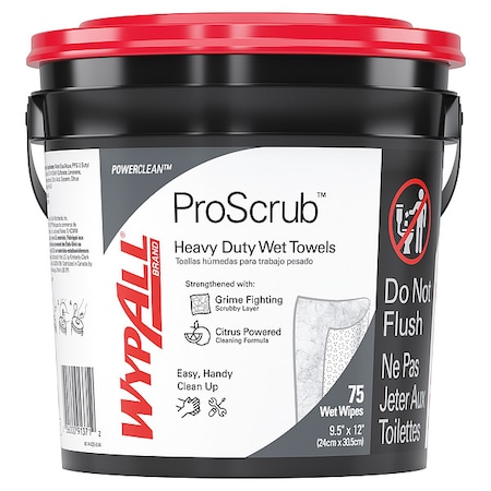 Wypall Waterless Industrial Cleaning Wipes (91371), Heavy Duty Moist Wipes, 75 Sheets / Container